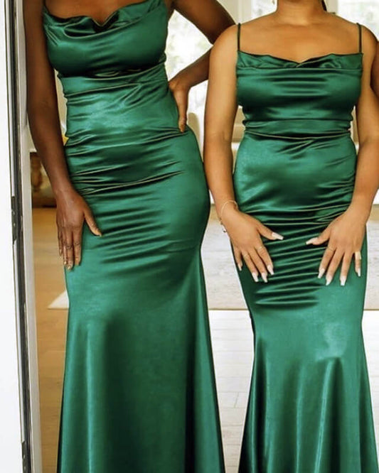 Mermaid Emerald Green Bridesmaid Dresses Cowl Neck