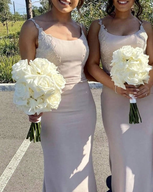 Mermaid Nude Satin Bridesmaid Dresses Applique