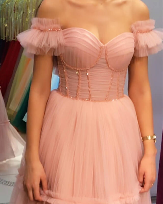 Short Pink Tulle Corset Dress With Handmade Flowers