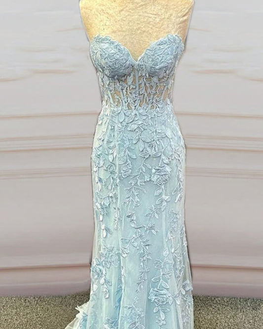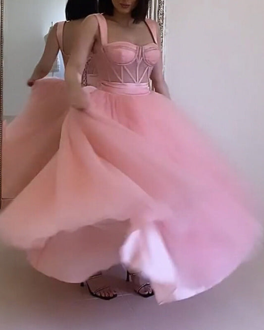 Glitter Tulle Sweetheart Corset Prom Dresses Long
