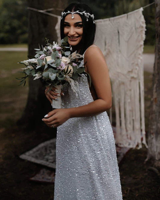 Boho Sparkles Wedding Dresses Open Back