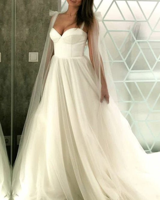 A-line Tulle Wedding Dress Sweetheart Satin Corset