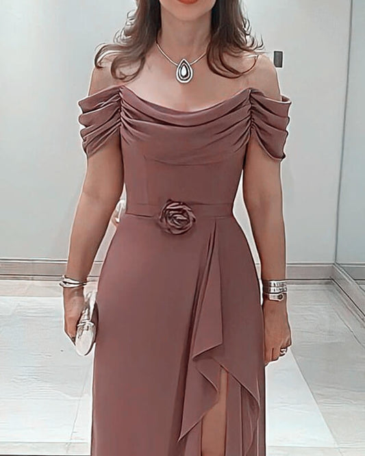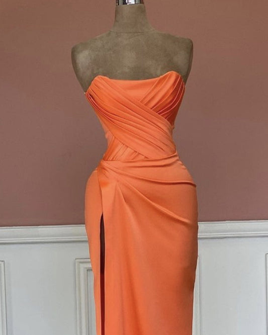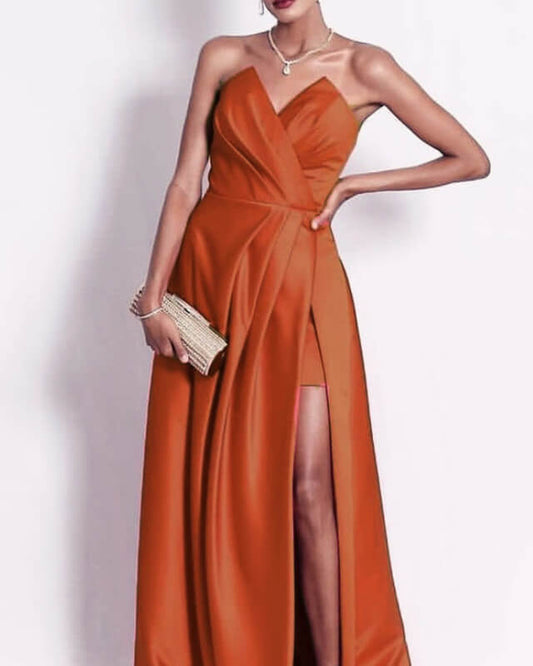 Mermaid Burnt Orange Ruffles Shoulder Dress