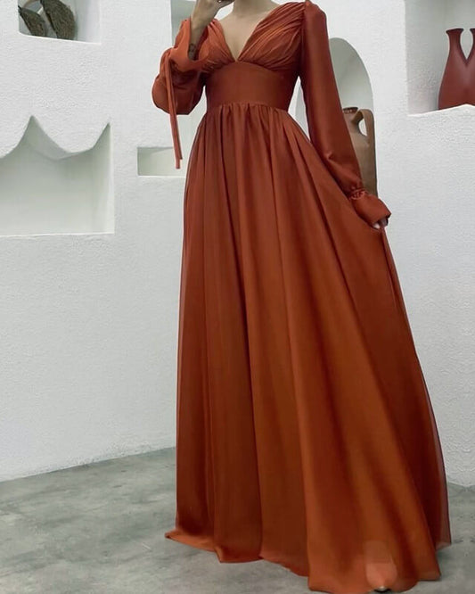 Deep V-neck Chiffon Bridesmaid Dress With Sleeves