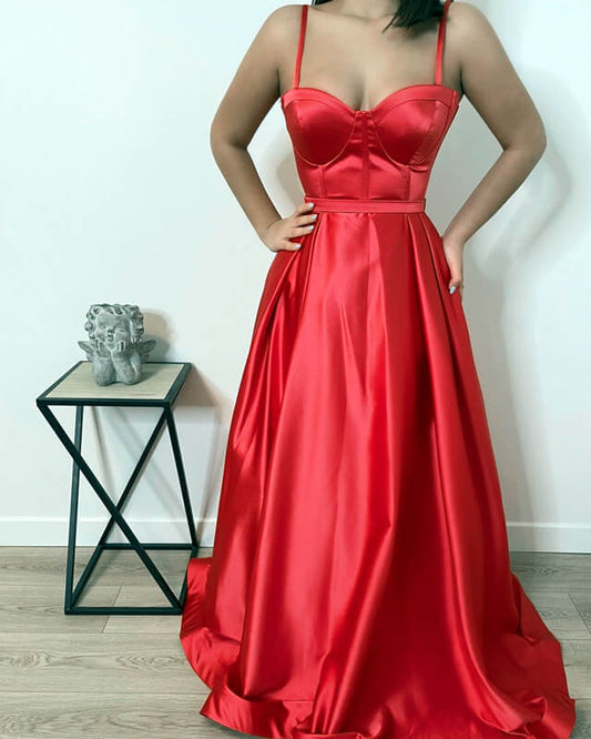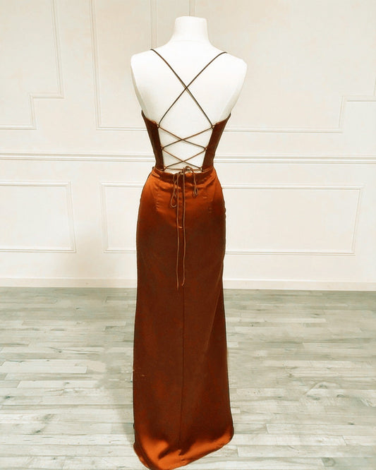 Mermaid V-neck Spaghetti Straps Satin Dress With Slit