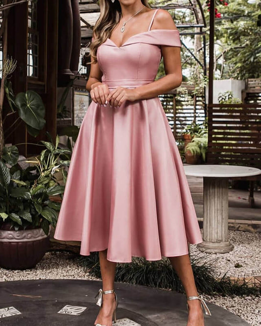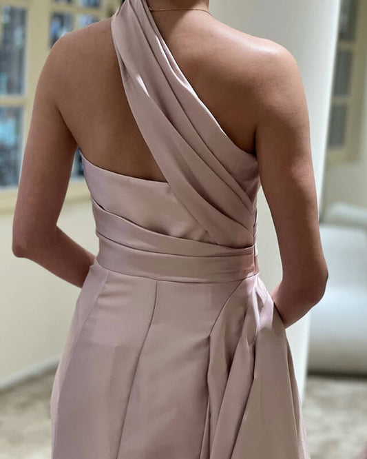 Long Cowl Neck Off Shoulder Satin Split Dress