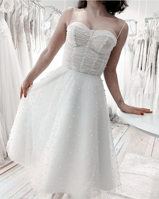 Champagne Tulle Boho Wedding Dresses Sleeved