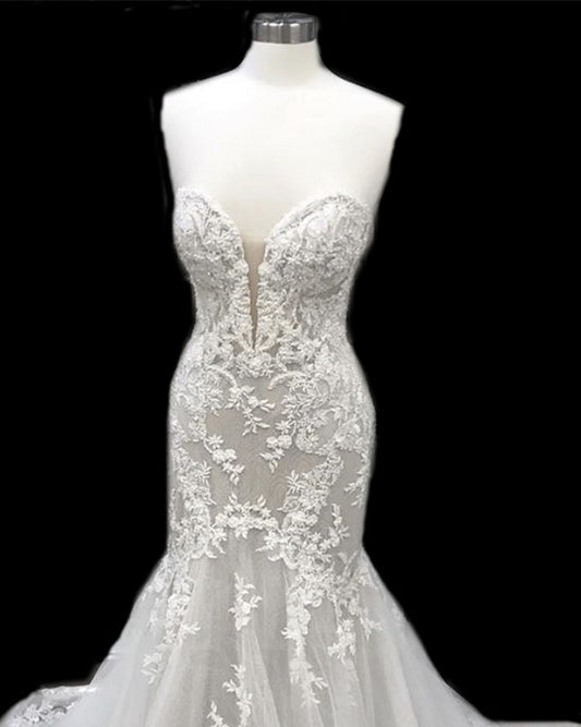 Appliques Wedding Dress Mermaid Sweetheart Tulle Ruffles