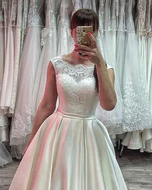 A-Line /Princess Satin Wedding Dress Lace Scoop Neck