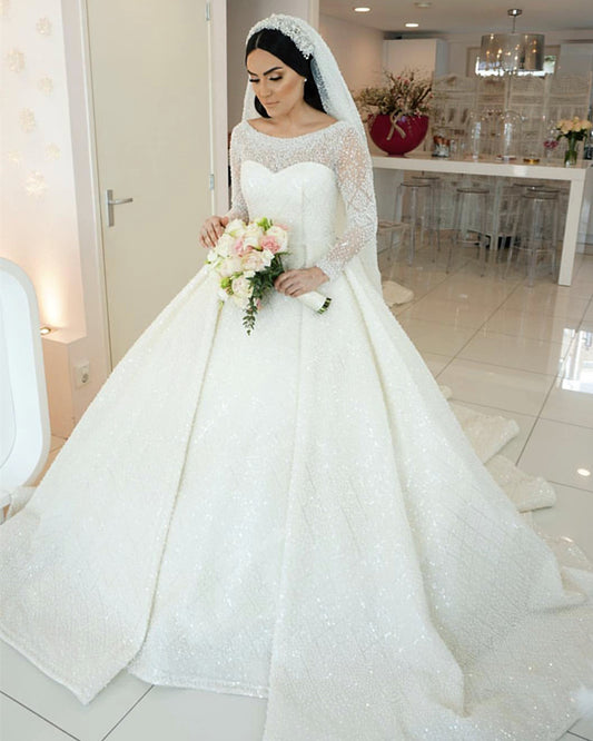 Bling Sequins Wedding Dresses Ball Gown Sleeved