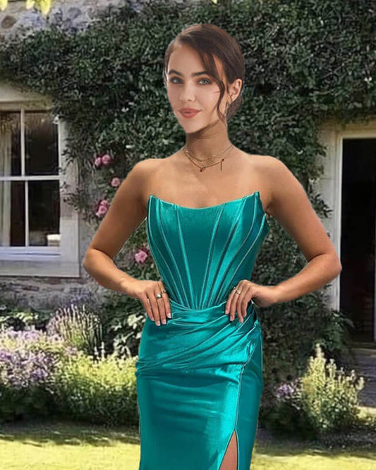 Mermaid Jade Satin Strapless Dress