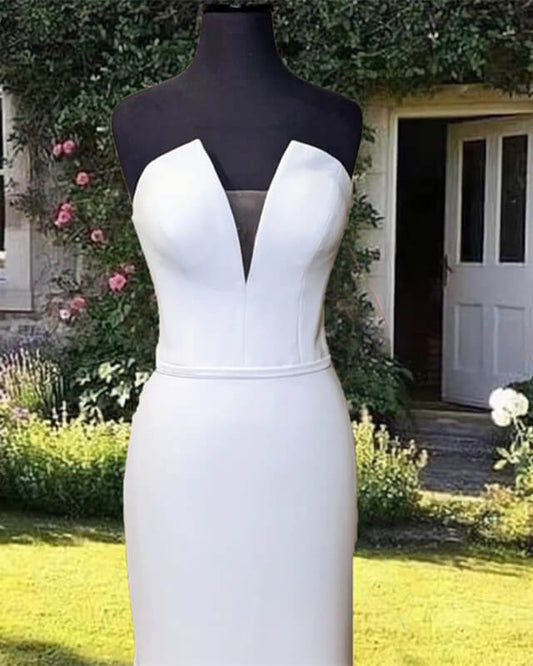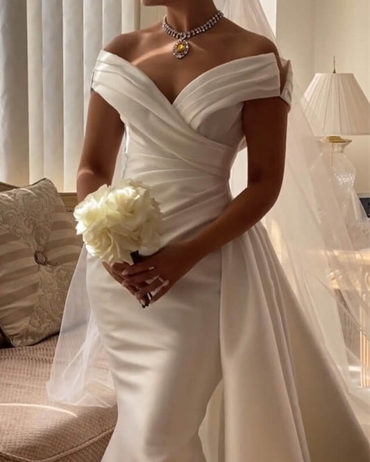 Mermaid Ruched Satin Wedding Dress Removable Skirt