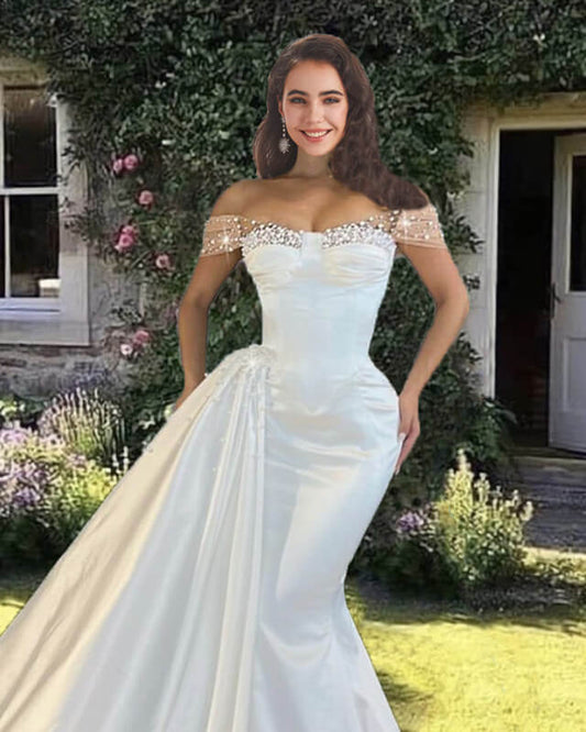 Mermaid Corset Satin Wedding Dress Off Shoulder