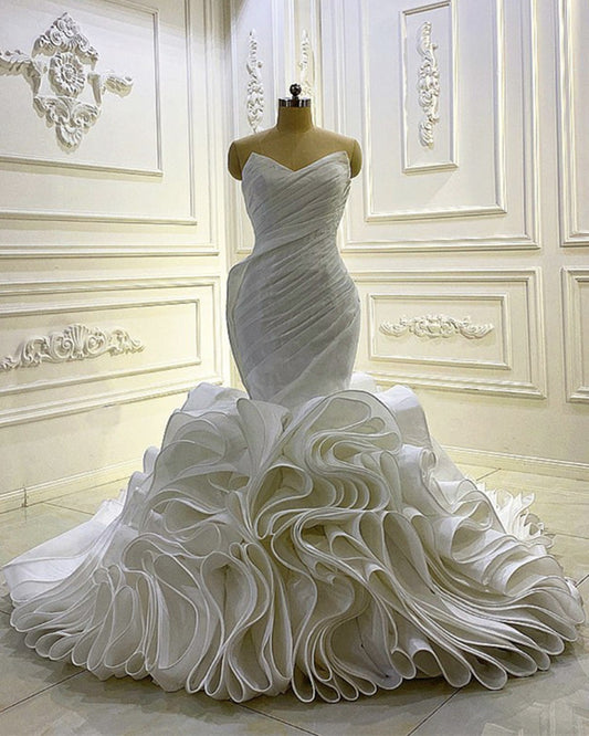 Mermaid Wedding Dresses Pleated V Neck Ruffles