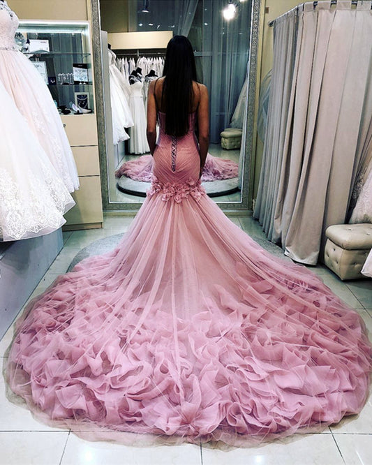 Pink Wedding Dress Mermaid Sweetheart Ruffles