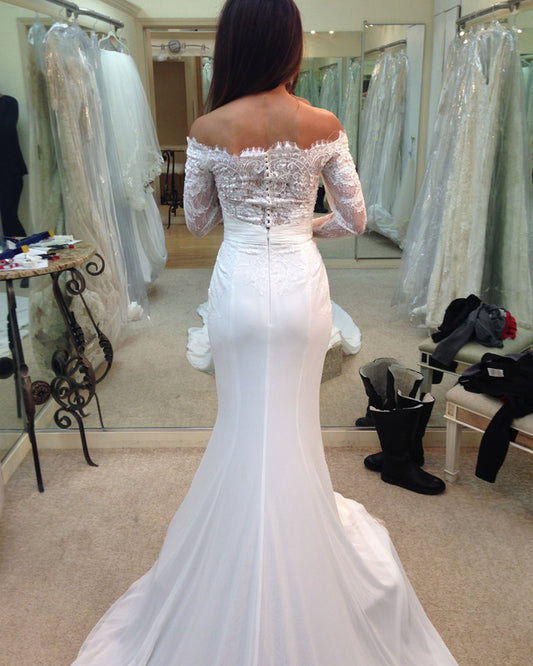 Mermaid Wedding Dress Lace Long Sleeves Off Shoulder