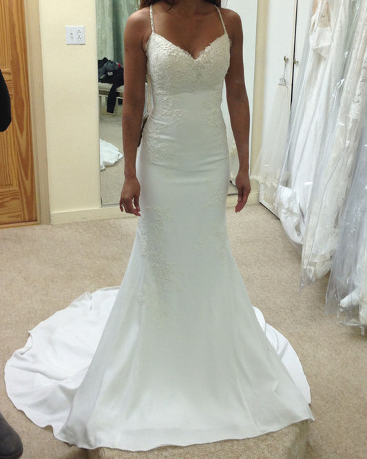 Mermaid V Neck Wedding Dress Appliques Spaghetti Straps