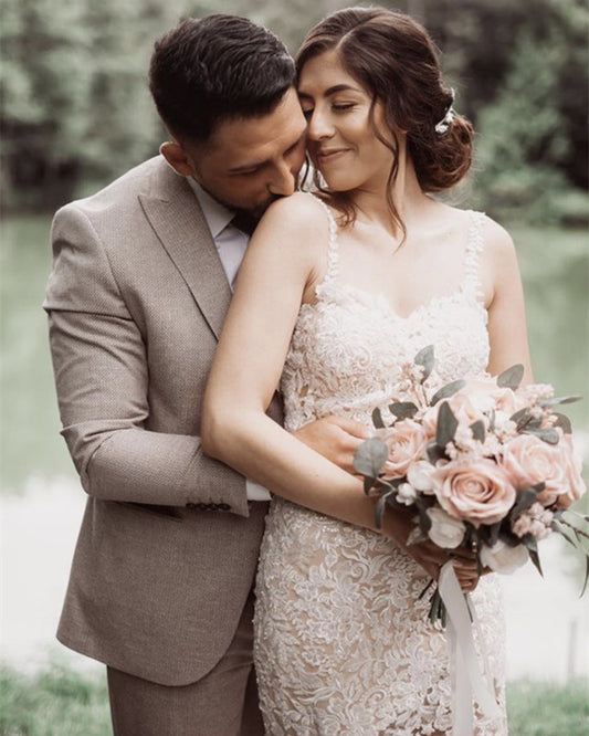 Boho Lace Mermaid Wedding Dress Open Back Spaghetti Straps