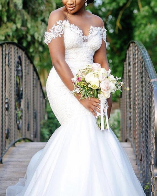 Elegant Mermaid Wedding Dress Lace Off Shoulder
