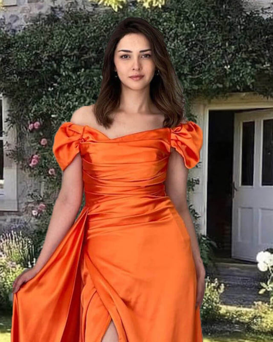 Mermaid Burnt Orange Ruffles Shoulder Dress