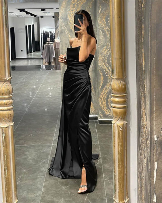 Mermaid High Slit Ruched Satin One Shoulder Dress