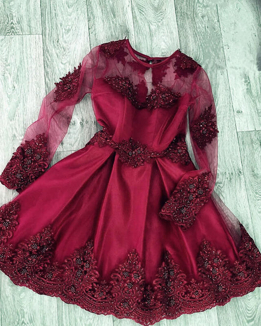 Short Royal Blue Long Sleeves Appliques Homecoming Dress