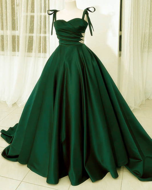 Bow Straps Sweetheart Ball Gown Satin Dress