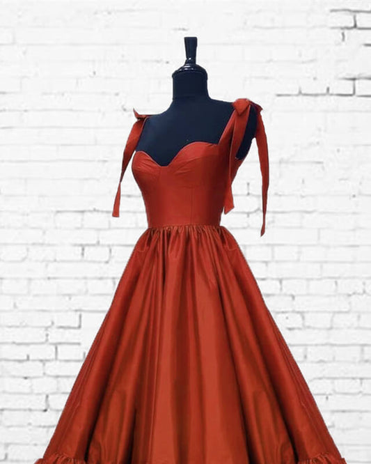 Burnt Orange Satin Ruffles Hem Dress With Bow