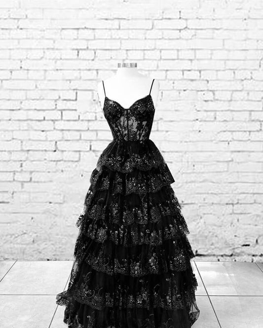 Black Prom Dresses, Two-Piece Dress, Designer Prom Dress, Modest Prom Dress,Sleeve Prom Dresses, Corset Prom Dress