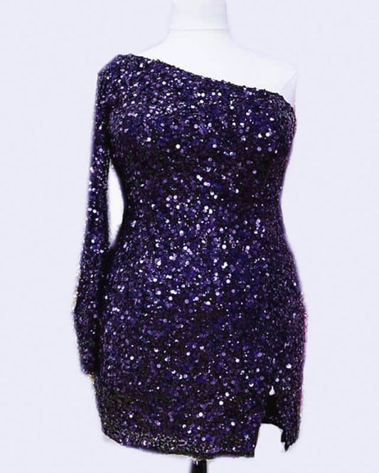 Short Light Purple Plus Size Sequin Bodycon Dress