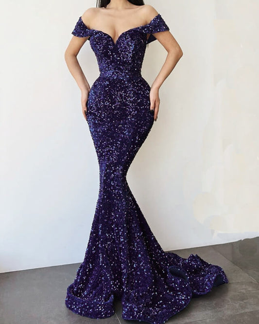 Mermaid Sequin Ruffles Off The Shoulder Dress