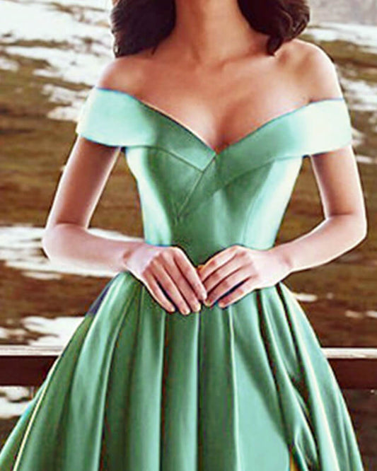 Sage Green Bridesmaid Dress Satin Off Shoulder