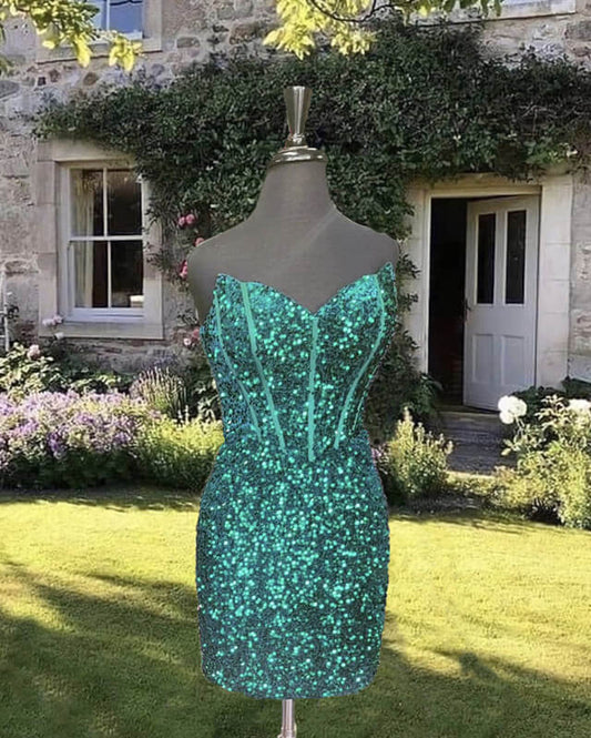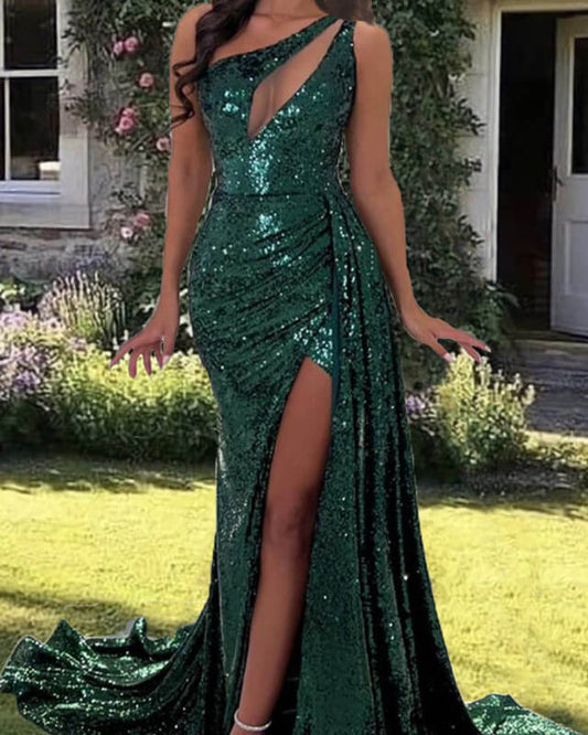 Mermaid Emerald Green Sequin One Shoulder Dress