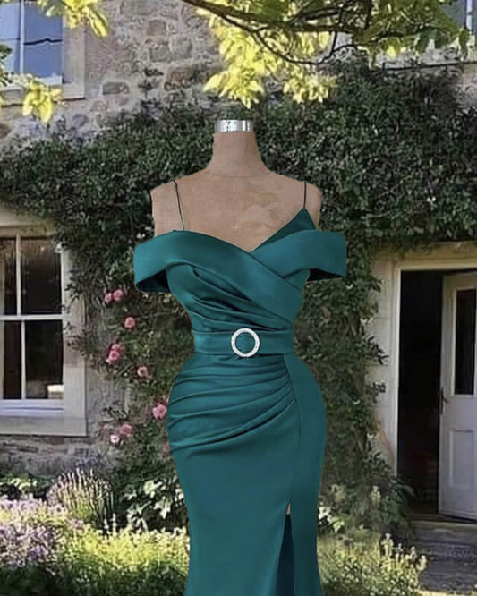 Mermaid Dark Green Cold Shoulder Satin Dress