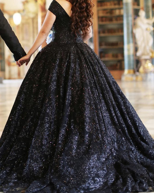 Black Prom Dresses, Two-Piece Dress, Designer Prom Dress, Modest Prom Dress,Sleeve Prom Dresses, Corset Prom Dress