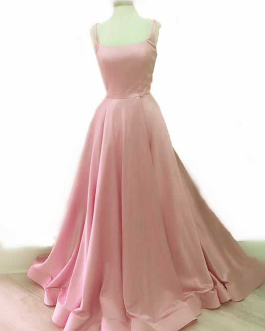Spaghetti Straps Ball Gown Satin Prom Dresses