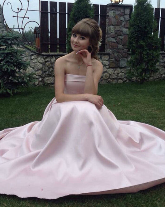 Long Strapless Bow Sashes Satin Formal Dresses
