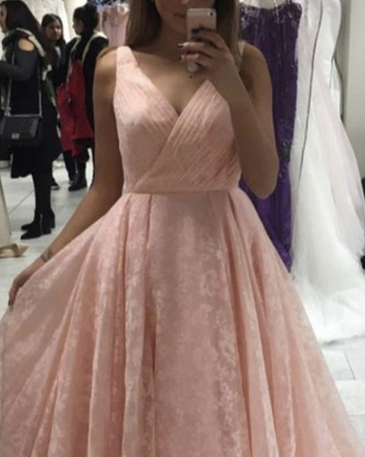Pleated V Neck Ball Gown Princess Prom Dresses
