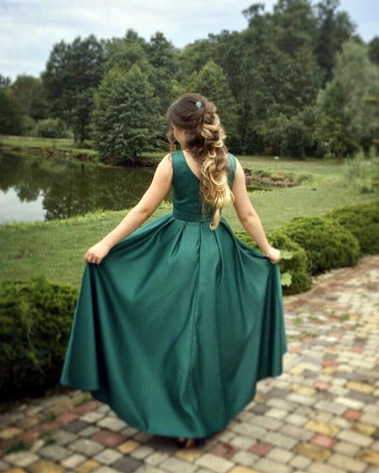 Floor Length Satin Plunge Neck Formal Dress