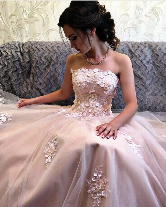 Strapless Corset Tulle Prom Dresses Lace Flowers