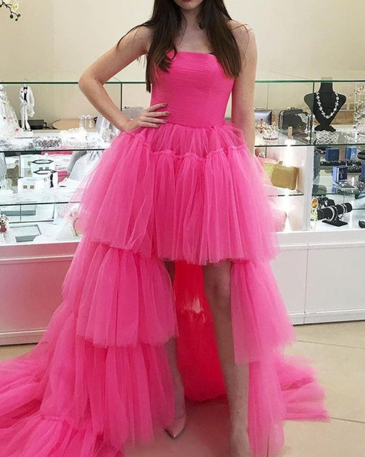 High Low Prom Dresses Strapless Tulle Ruffles