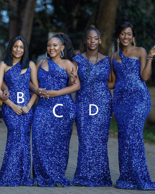 Royal Blue Sequins Mermaid Bridesmaid Dresses Mismatched