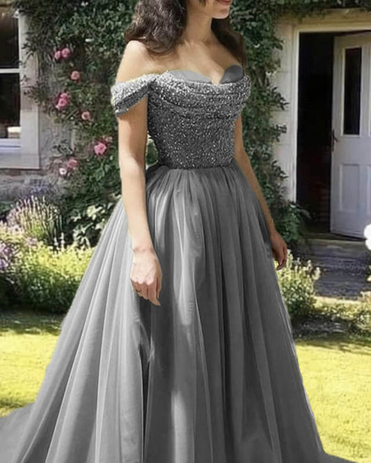 Mermaid Dusty Pink Sequin Off-shoulder Dress