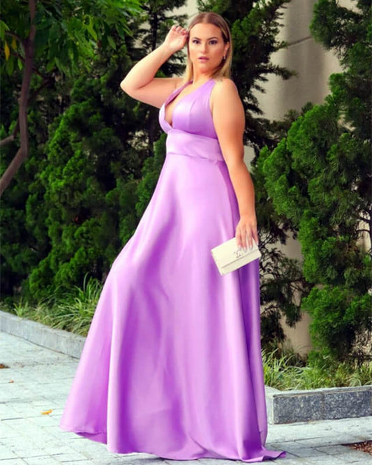 Plus Size Mauve Halter Satin Bridesmaid Dresses