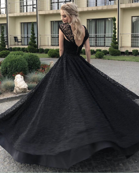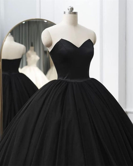 Black Ball Gown Sweetheart Beaded Corset Wedding Dresses
