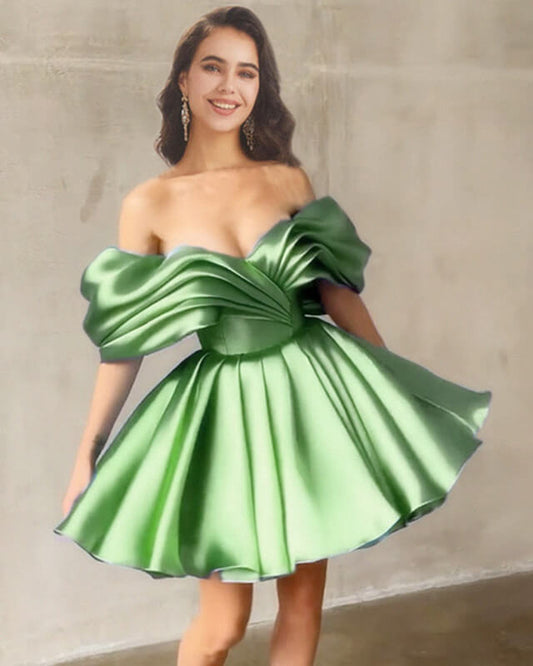 Short Light Green Satin Ruffle Dress