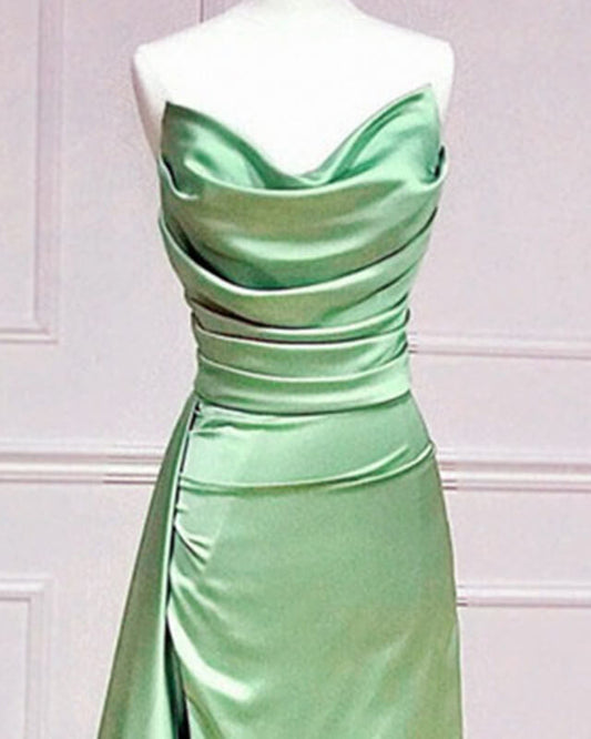 Mermaid Strapless Split Ruched Satin Dress