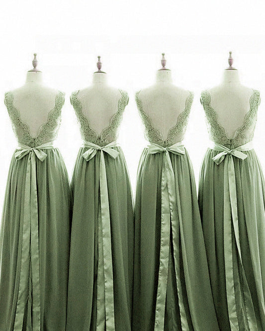Dark Sage Bridesmaid Dresses Chiffon V-neck Appliques