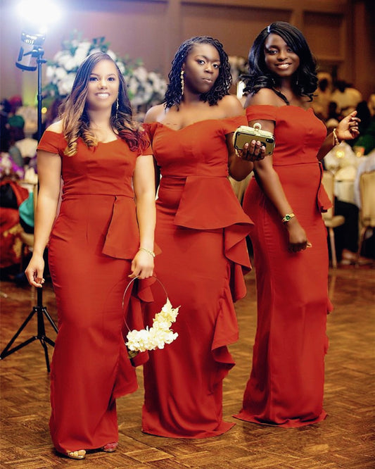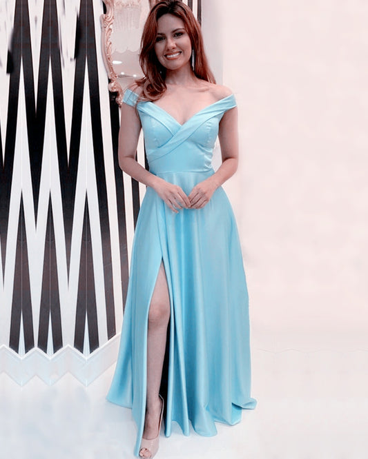 Long Satin Split Bridesmaid Dresses Off Shoulder