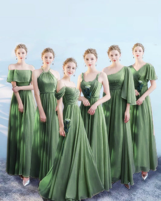 Dusty Sage Bridesmaid Dresses Chiffon Mismatched